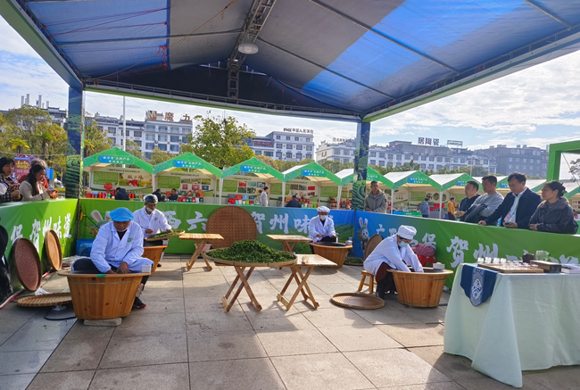 2025 年 11 月 23 日,“2025 大地流彩・全国和美乡村健康跑”(简称 “村跑”)广西贺州富川站在富川瑶族自治县农产品电商产业园开跑。为进一步弘扬贺州茶文化、拓宽茶产业宣传渠道,本次村跑大集配套设置的农特产品展区特设炒茶专区,特邀 4 名制茶经验丰富的制茶师傅,以现场实操形式直观呈现茶叶杀青、揉捻等核心工序。