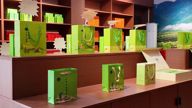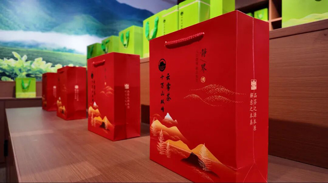 ▲展销馆内摆放十万山双峰云雾茶。