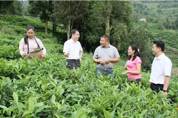 农行百色分行农成群行长在凌云县青龙山的生态有机茶叶基地现场调研