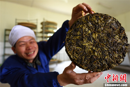 图为4月15日,工人在广西三江侗族自治县良口乡和里茶厂将野生茶叶进行烘干。 杨明 摄