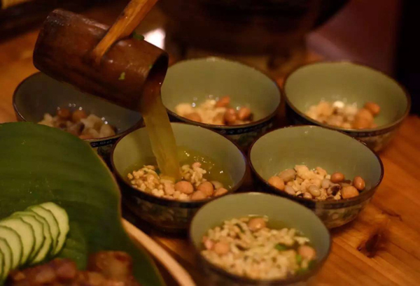 融水苗族、三江侗族打油茶是柳州茶文化的典型代表,是中国茶文化史上的一朵奇葩。近期,在风景宜人的三江侗寨,将传统民俗文化与侗族打油茶融合,创立了一套赏心悦目的“侗寨厨娘”打油茶茶艺。打油茶色、香、味俱佳,素有中国侗寨咖啡之美誉。