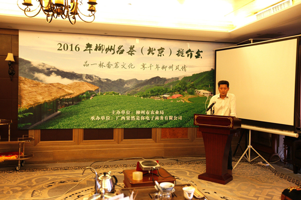 柳州市农业局杨奎枝副局长在专场推介会上向大家介绍柳州茶业