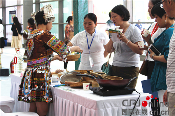 国际在线陕西频道报道(段晓蕊):“这个是什么茶,以前怎么没见过啊?”在2017第十一届西安国际茶博会,一位身着民族服装的苗族姑娘现场制茶,吸引了众多参展观众询问。