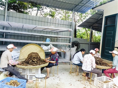 走进巴马瑶族自治县那桃乡兰廷村野生甜茶加工基地,一簇簇加工后摊晒在阳光下的小叶子格外引人注目。在基地上,兰廷村党支部副书记黄玉坚带领10多名村民正在挑选茶叶。据黄玉坚介绍,正在挑选的这些茶叶就是被誉为“长寿茶”的甜茶,学名为多穗石柯,其味甜醇厚,富含黄酮,具有降压消脂,降糖护肝,提高免疫机能,延缓衰老等功效。