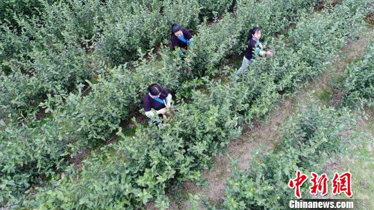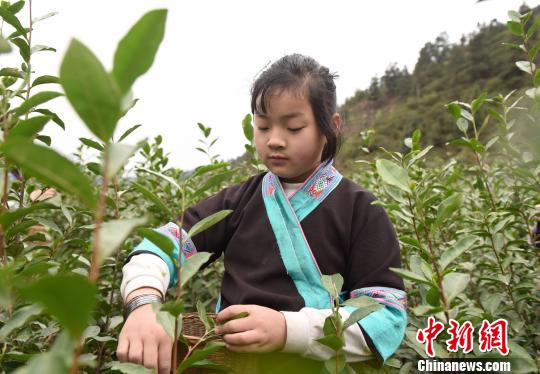 几名茶农在三江侗族自治县良口乡产口村采摘早春茶。 龚普康 摄