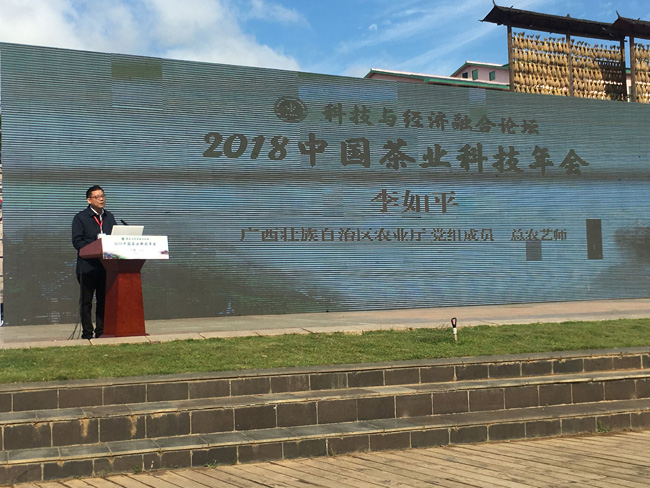 11月8日上午,自治区农业厅党组成员、总农艺师李如平出席在柳州三江县召开的2018中国茶叶科技年会开幕式并作题为发展茶产业助力精准扶贫的报告。