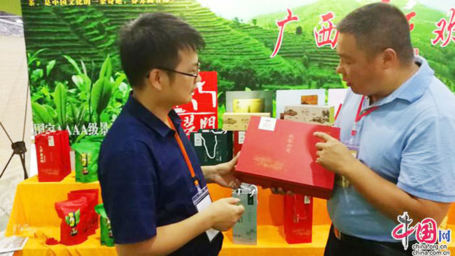 阳长标在第14届广西名特优农产品(广州)交易会上介绍首批广西农业品牌凌云白毫茶