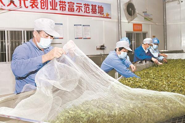 图为农户在峰茂茶叶专业合作社扶贫车间劳作