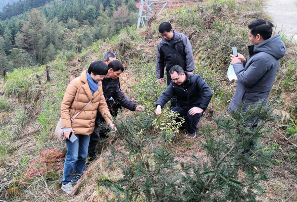 现场察看泗联村新种植茶树生长情况,提出改进措施和建议。