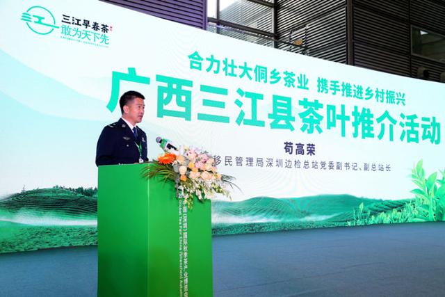 作为广西三江县脱贫攻坚帮扶单位,国家移民管理局深圳边检总站自2019年以来,牵手深圳华巨臣集团,连续4次帮助三江县政府组团参展深圳茶博会,通过设置三江扶贫茶叶展区、开展三江茶品牌专场推介会、现场签约会等主题活动,帮助三江县参展茶企销售茶叶3000余万元,进一步扩大了三江茶叶品牌影响力,推动了三江茶叶产业发展,提升了三江县茶农积极性,巩固了脱贫攻坚成果。